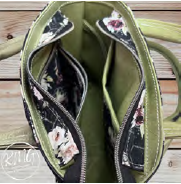 The front features an origami pocket with zipper and slip. Best when made with quilt cotton.