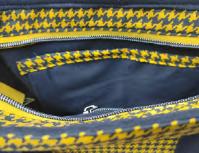 Inside, you will find another zipper pocket with overlay, a split slip pocket, and a keyminder.