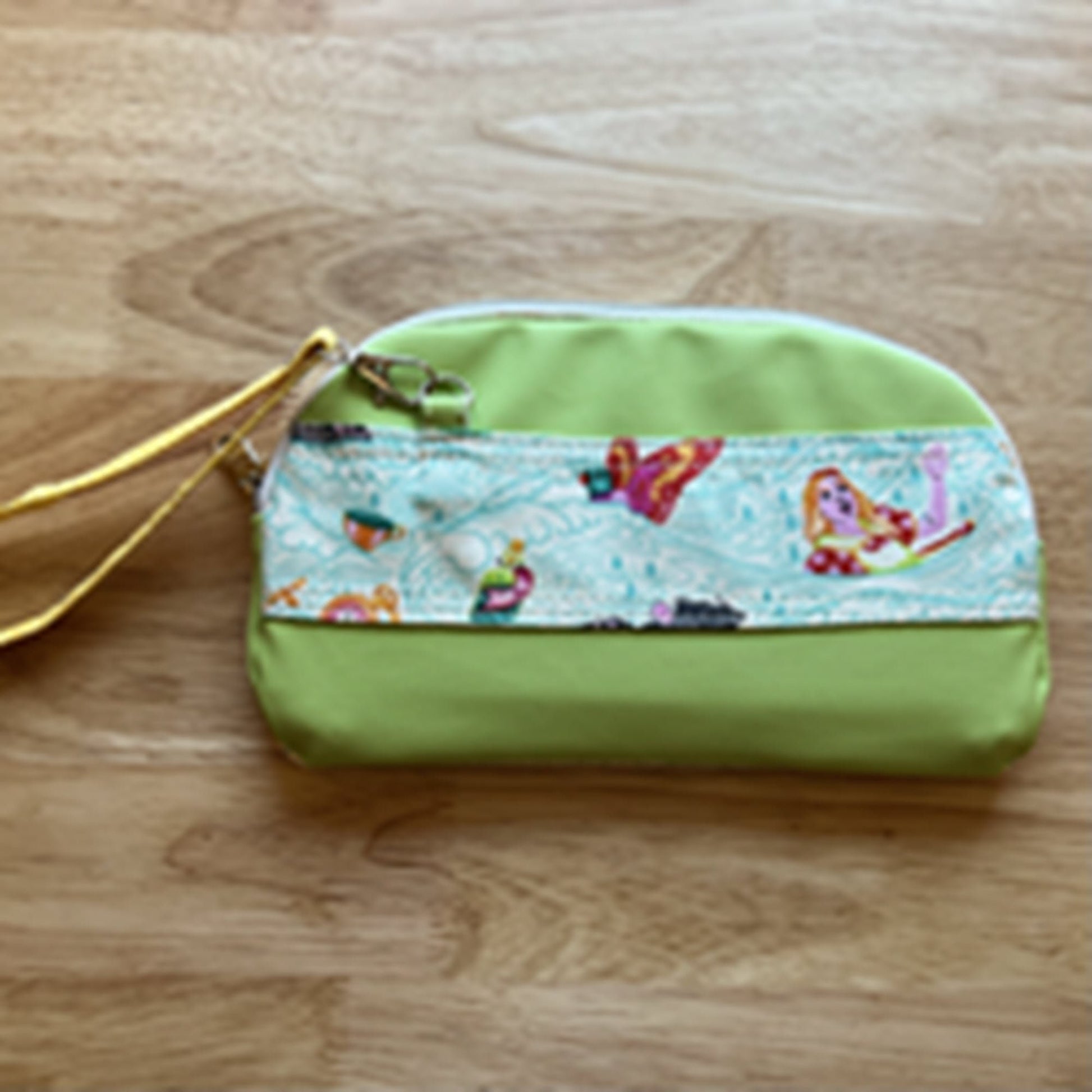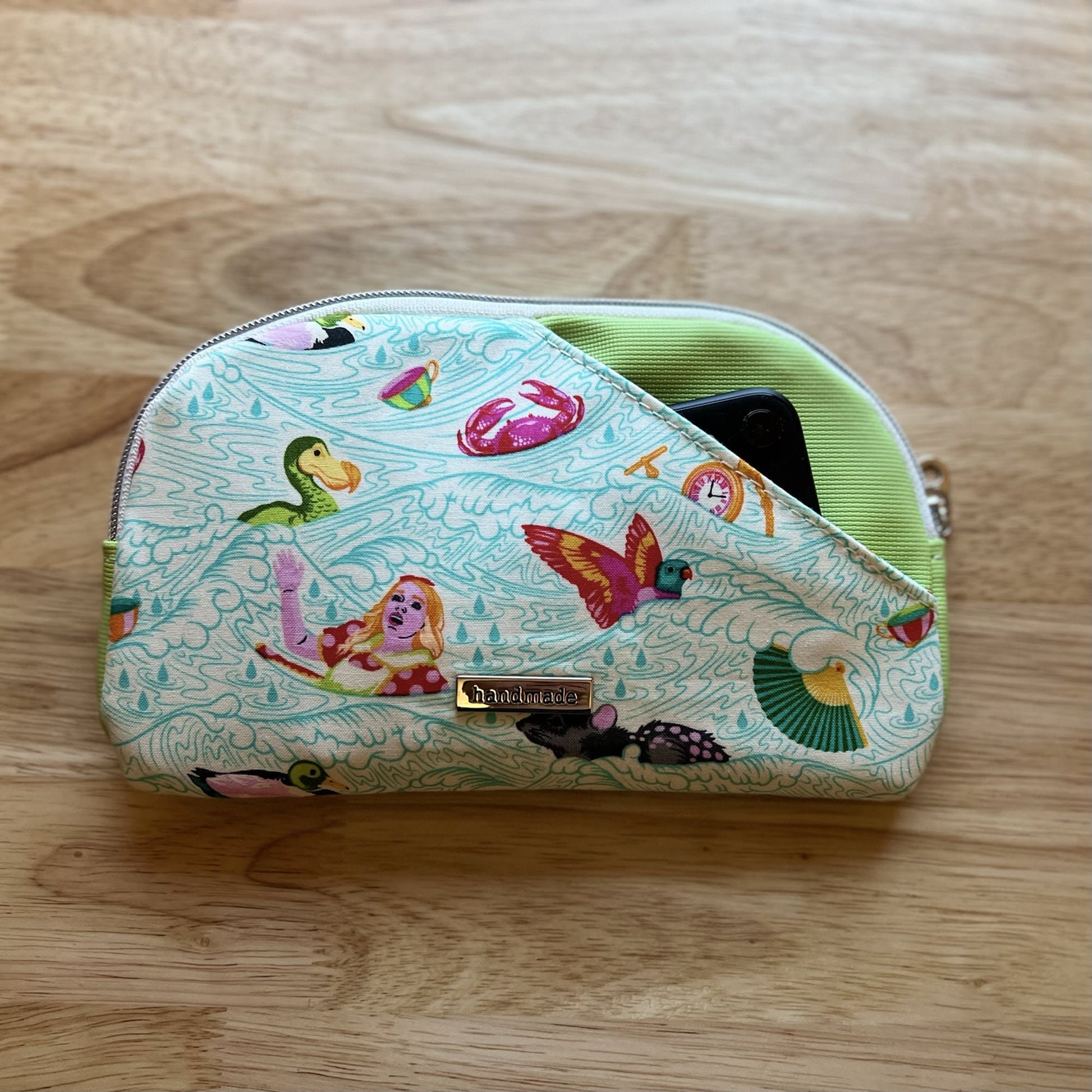 This one features Tula Pink Alice fabrics with apple green vinyl accents and nickel hardware. Ready to fall down a rabbit hole?