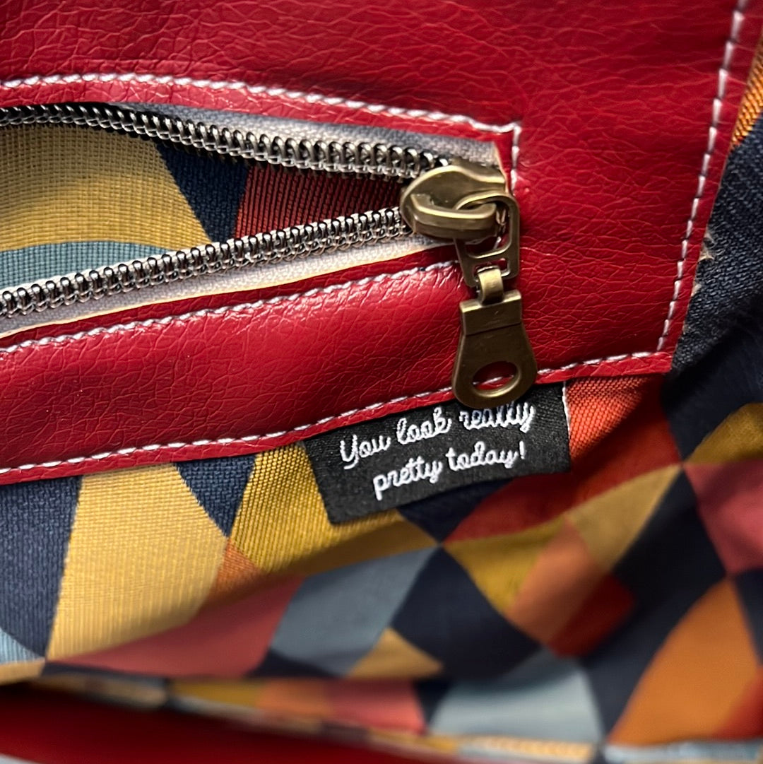 KMGhandmade Original Big Mouth Bag - Red & Harlequin