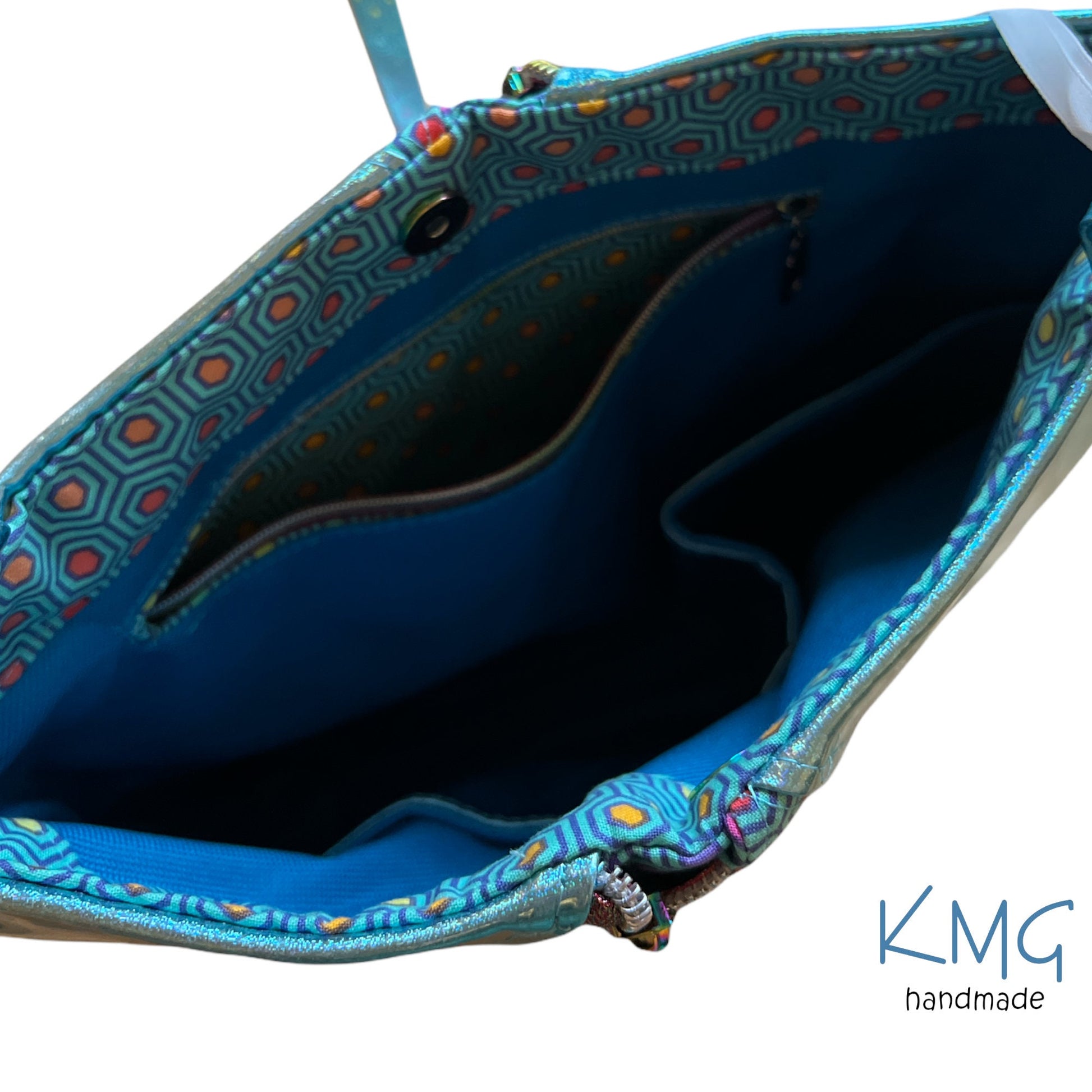 KMGhandmade Original Compass Crossbody Bag - Aqua Sparkle & Hexy