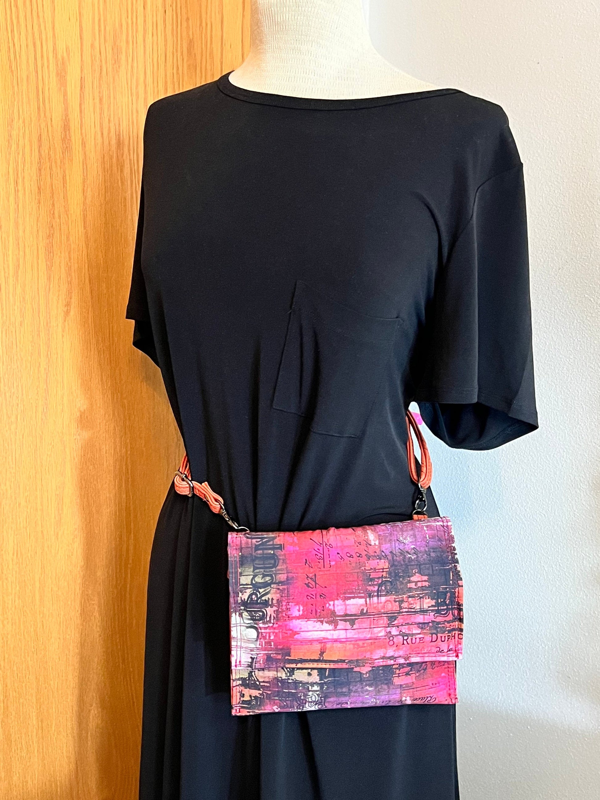 The Aura Envelope Bag is a quick project that uses little fabric. The project is suitable for beginning bag makers, and is domestic-friendly. (Depending on the fabrics you choose of course.) It can be carried as a clutch, wristlet, crossbody, waist pack or under jacket bag. It is a skinny little number that carries your essentials. This also features an inside zipper pocket for cash and change, a tethered card-slot wallet for 4 or 8 cards and a key minder. It easily fits a large smartphone. Finished dimensions as written are 8 1/2" W x 7.5" H x <1" D, however, you can choose to increase your width (as shown in black faux leather, last photo) to create a sophisticated clutch/shoulder bag that will hold a bit more. This listing includes the pdf written instructions and photos for the magnetic snap closure Aura Envelope Bag. Video instruction is linked on page 2 and was recorded by Michelle Graham of mgrahamsews. A cutting chart for ruler and rotary users is provided, as well as, full template pattern pieces for those that prefer them. The pdf features the instructions for a magnetic snap closure. The turn-lock closure instructions are available as an add-on pdf, available from Elaine B Honey Designs, linked in the full pattern. You will need both to create a turn lock style of bag. After you make your Aura, please share it on my Facebook group, www.facebook.com/groups/kmghandmadebagmakers each week I choose a new Bagmaker of the Week and it could be you! Your bag is featured on the group banner and your name goes into a quarterly drawing for a custom bag made by me. If you need help, please reach out through the contact KMGhandmade here or on the Facebook group. If I am not available right away, I have over 2200 members there that are willing to help! If you enjoyed this pattern, please consider leaving a review. Thank you for supporting my small business. I can't wait to see what you make!