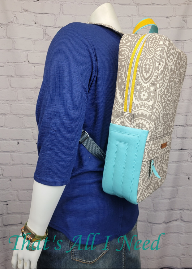 Perfect pattern for Back-to-School bags or traveling through airports! This bag comes in two sizes, the Oasis was designed for my 6'4" teenager to carry his books and laptop to school. The Mini Oasis was requested by his younger brother because he has to have everything like his big brother, just in a smaller size of course! I made a Mini for myself to use as a laptop bag for work, in fact, I made a couple for me because they were so fun.