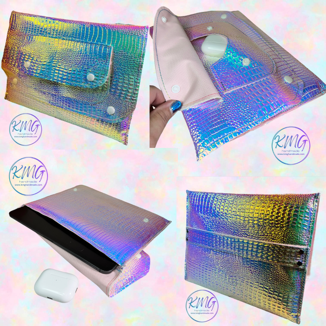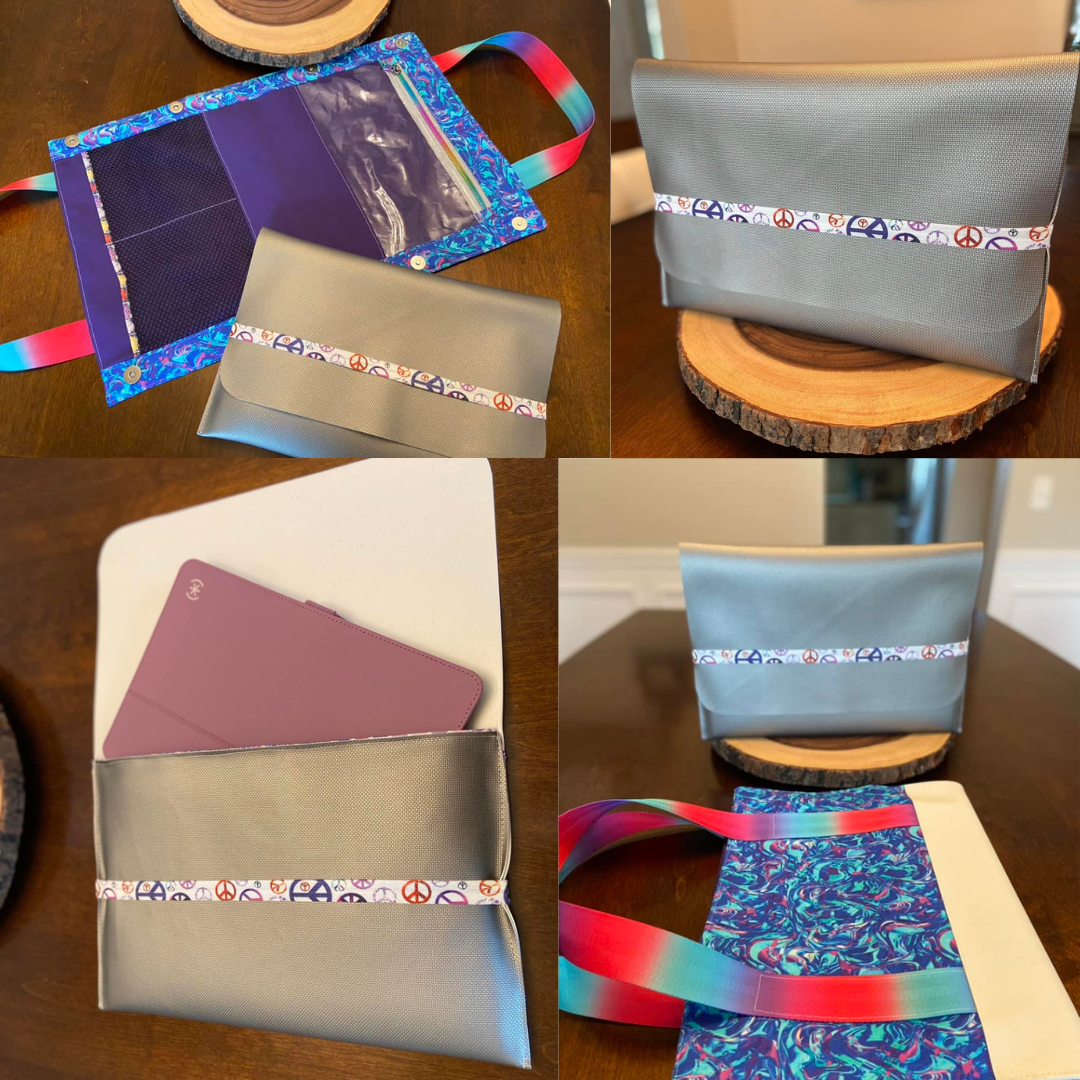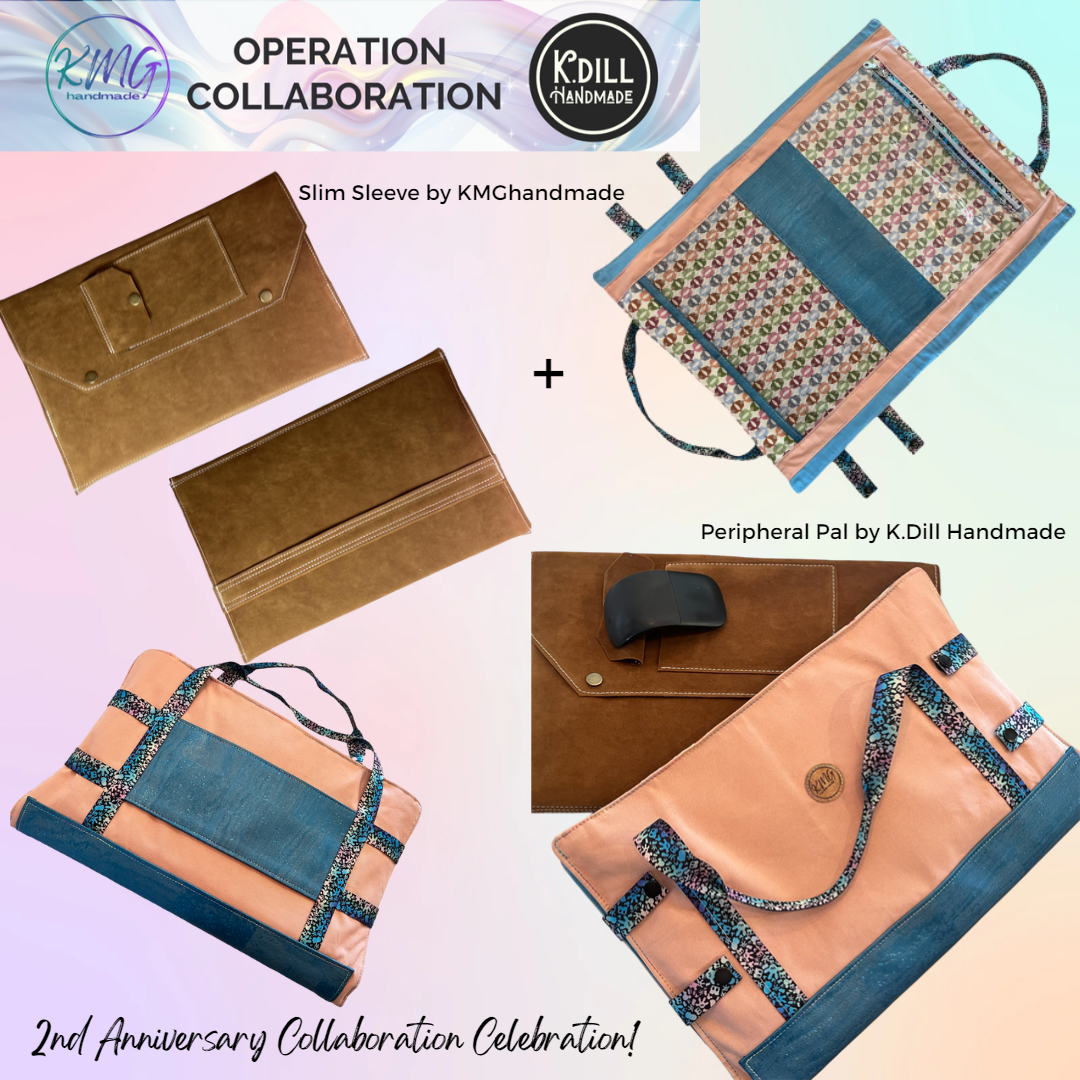 The Slim Sleeve is part one of the Operation Collaboration patterns from KMGhandmade and K.dill Handmade to celebrate our 2nd Anniversary of pattern designing! We started out with a collaboration of the Compass Crossbody Bag and Essentials Clutch Wallet patterns and now we are thrilled to give you these two patterns that go together like peanut butter and chocolate! Create your Slim Sleeve and use those finished dimensions to create a perfect fitting Peripheral Pal!