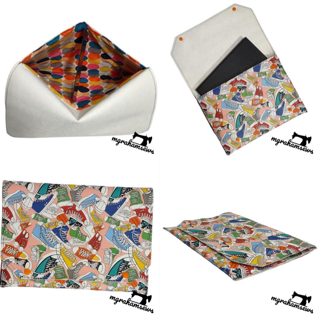 This pattern is to help you create a custom fit carrying sleeve for any electronic device you wish! What makes it really easy to do is the included Calculator link that allows you to plug in the dimensions of your device and it tells you how big to cut your exterior and lining pieces!