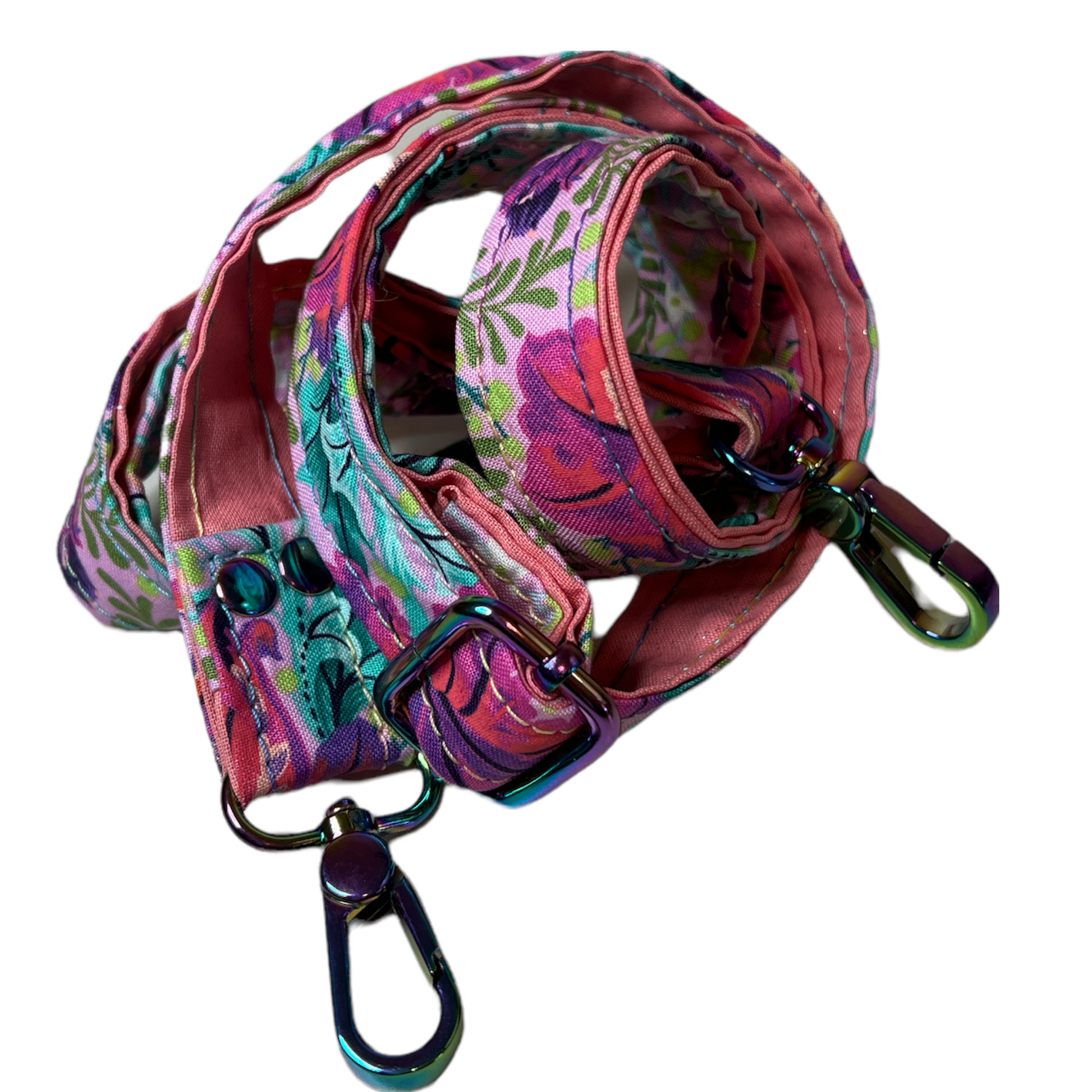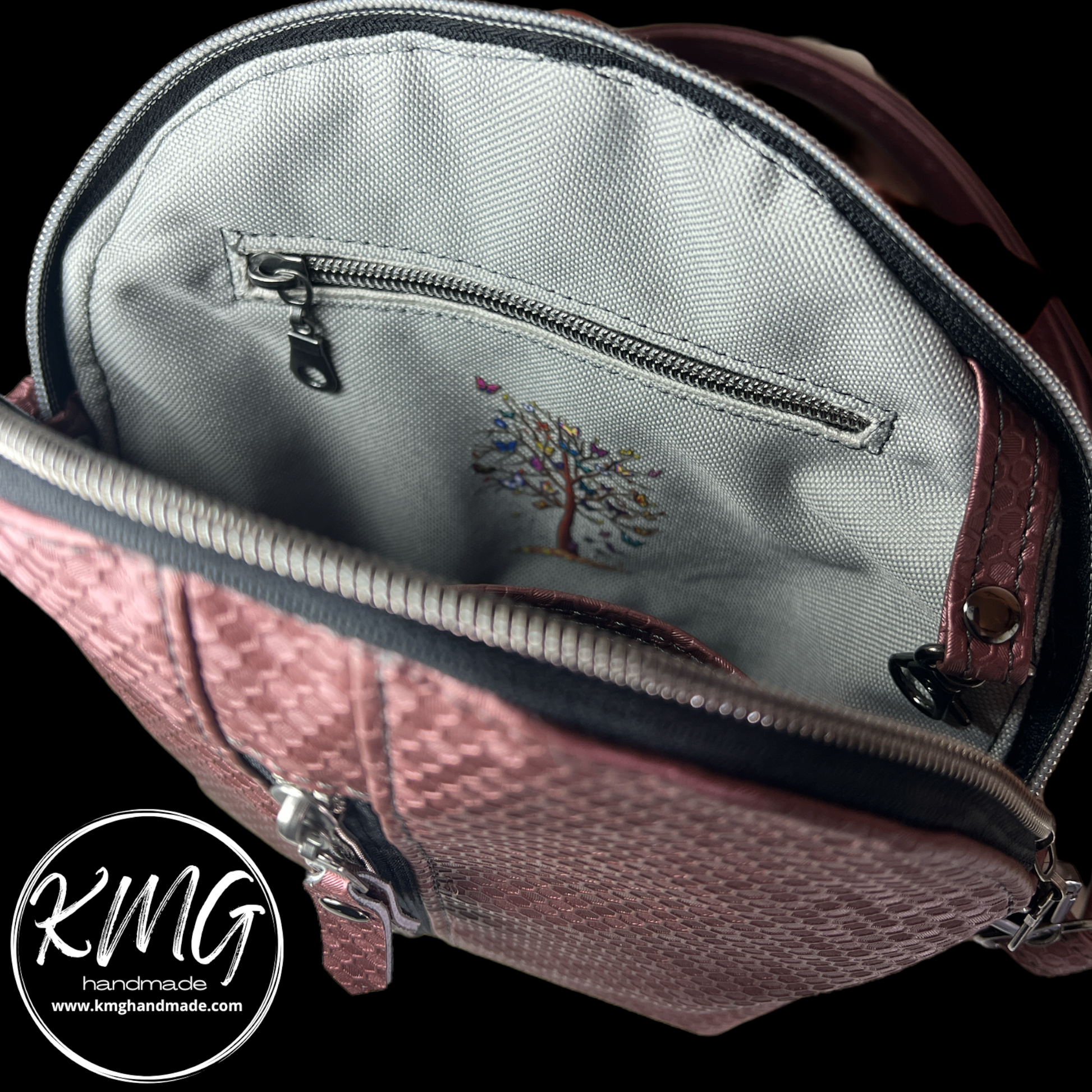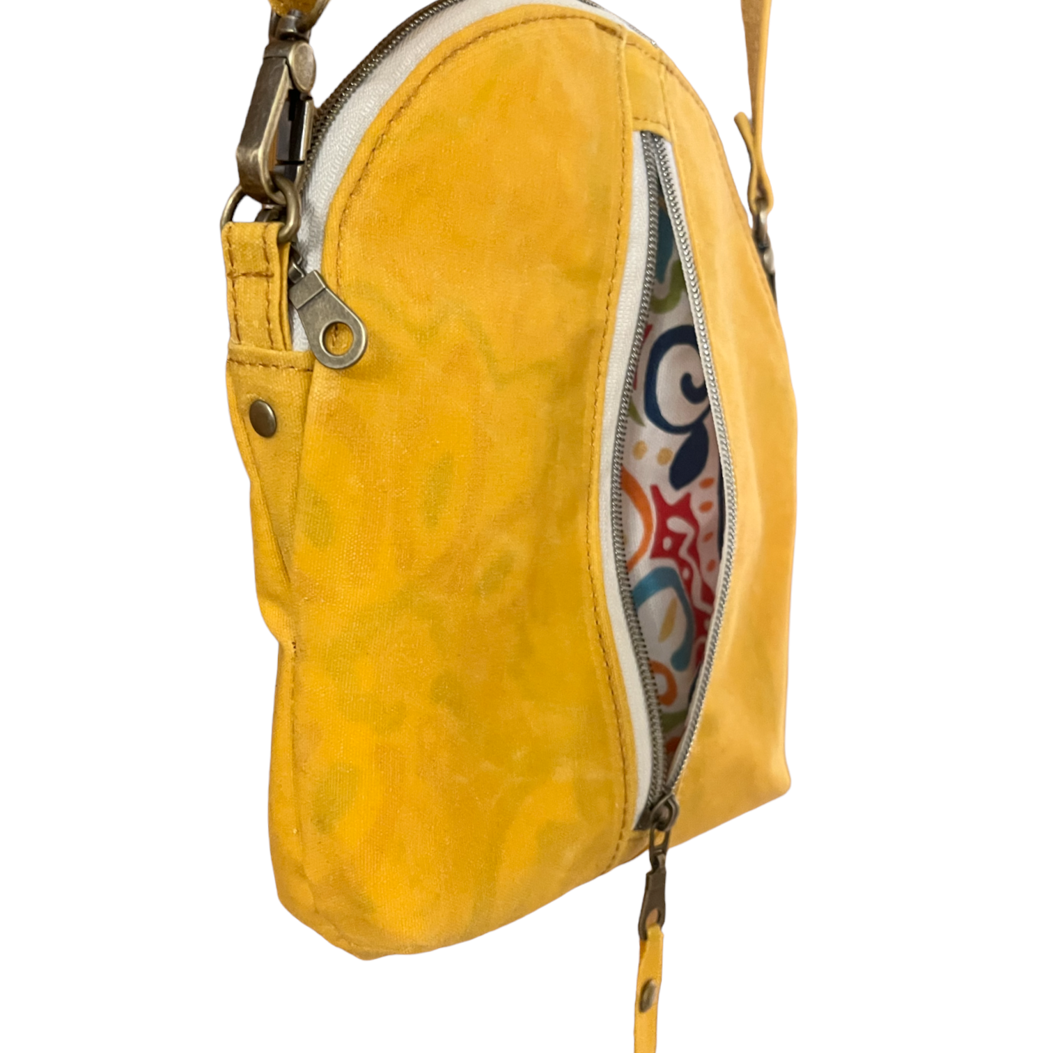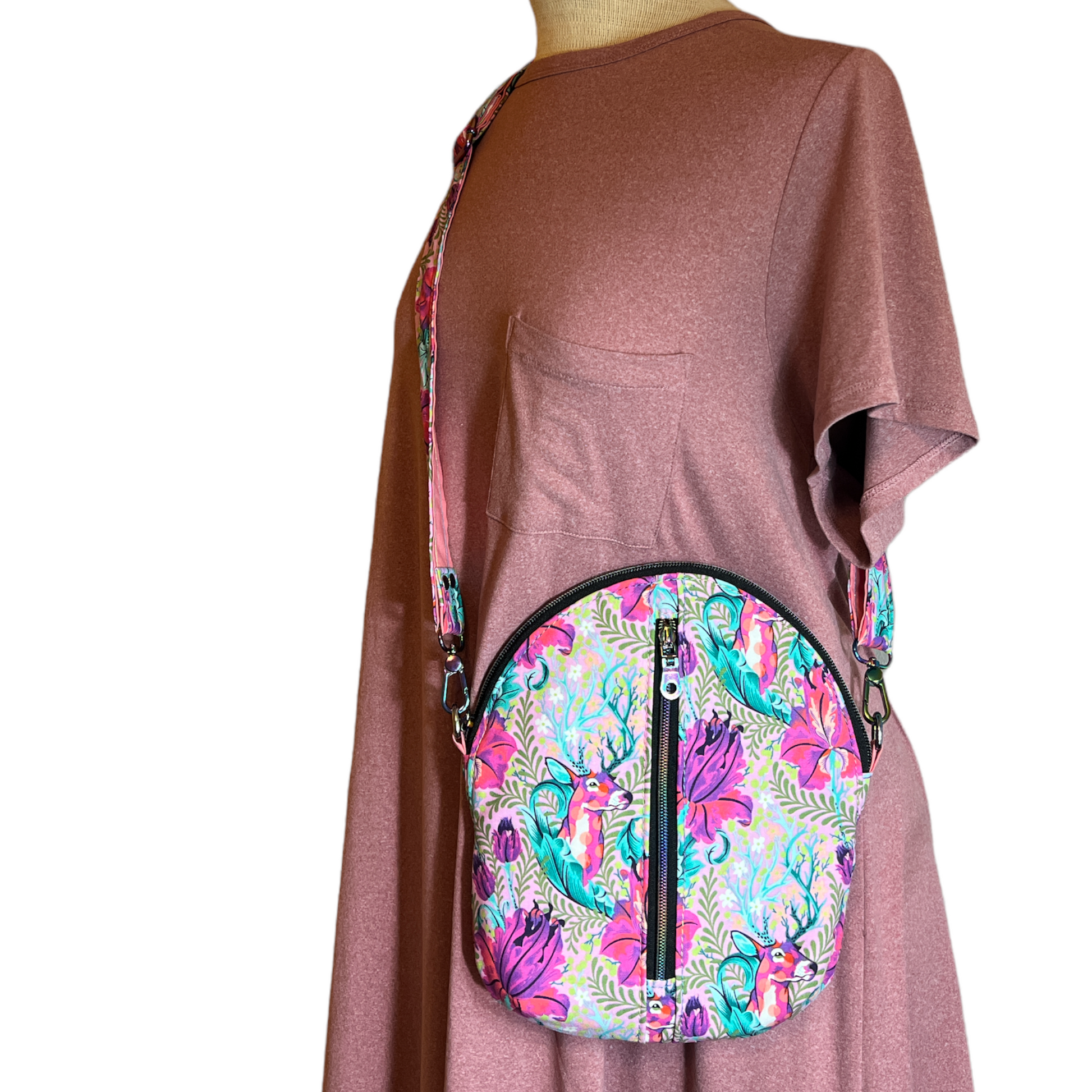 This bag is perfect for everyday use with all your essential gear. It opens up wide to access wallet, keys, sunglasses but also holds them securely in place with a zippered closure. The back has a magnetic closure slip pocket and the front has a vertical zippered pocket, large enough to carry a smartphone and a great place to feature custom zipper pulls or fussy cut fabric prints! The Wellington Wallet pattern is a perfect companion to this bag as it fits perfectly in the interior divided slip pocket to hold your cards and cash!